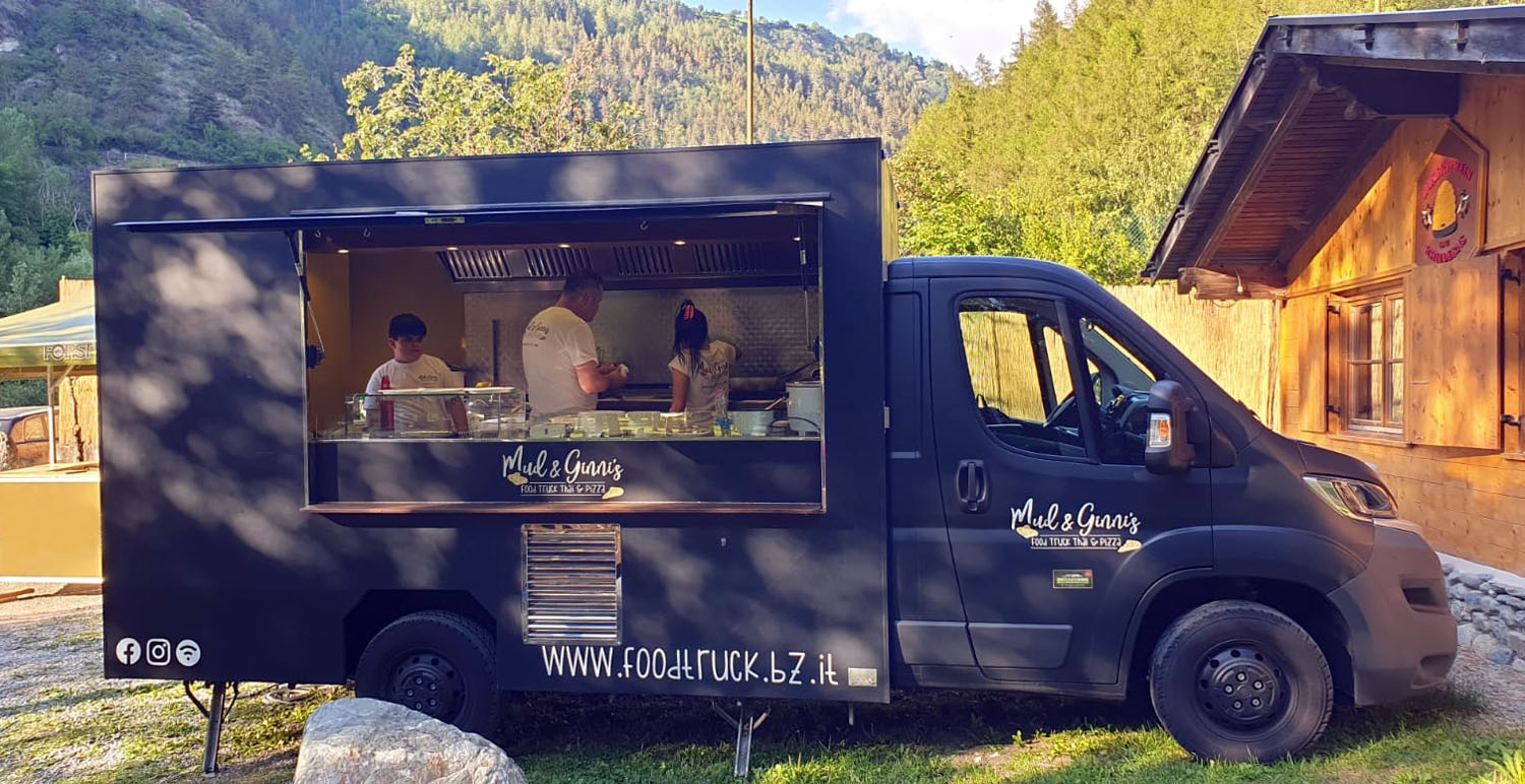 Mud und Ginni bringen mit dem ersten Food Truck aus dem Sarntal authentische, handgemachte Spezialitäten aus ihrem jeweiligen Heimatland und eine Wagenladung Genuss zu Märkten, Festivals und Events jeder Art. Optional dazu gibt’s den Holzofen-Anhänger, in dem Ginni seine köstliche, hausgemachte Pizza backt. Wundert Euch nicht, wenn der Geschmack Truck auch bald vor Eurer Haustür zum Stehen kommt.