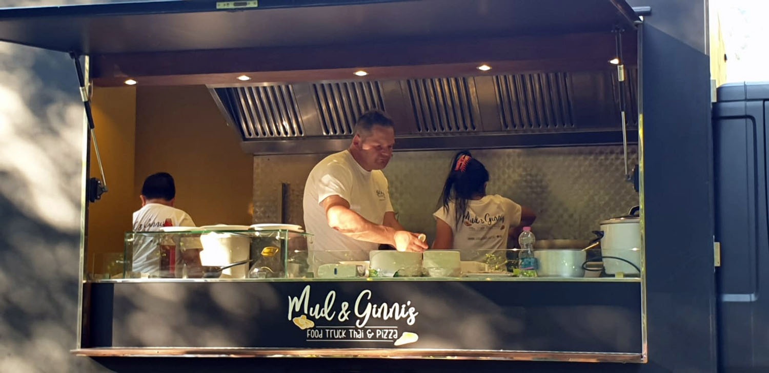 Trefft Mud und Ginni: Die kreative Thaifrau und den Außerpenser Bauernsohn, die eine große Liebe zueinander verbindet. Außerdem teilen sie auch die Liebe zu ihren Söhnen, dem schönen Sarntal und nicht zuletzt zu gutem, authentischem Essen aus den besten regionalen Zutaten. So ist die Idee geboren, ihre kulinarischen Talente zu vereinen und seit 2022 bringen sie gemeinsam authentische Thai-Küche und handgemachte Pizza aus dem Holzofen mit ihrem Food Truck auf die Straße. Das Beste aus zwei Welten eben, jetzt unterwegs in ganz Südtirol und darüber hinaus.